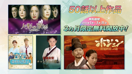 株式会社NTTドコモ(以下、ドコモ)は、映像配信サービス「Lemino®」において、2025年3月31日(月)までの期間限定で韓流・アジアコンテンツ全37作品を無料配信中です。