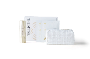 1年の締めくくりに「THE MYTOL」が贈るコフレは、発売から3周年を迎え、累計販売本数50万本※1を突破した大人気アイテムの先行美容液『ザ マイトル エッセンス』本品と、2025年4月に期間限定で販売し、ご好評につき10月より再度期間限定で販売中の『ザ マイトル 薬用マスクドライレスキュー』2枚に、雪の世界をイメージしたオリジナルの『スノーツイードポーチ』を加えた、この冬限りの特別なセットです。『ザ マイトル 薬用マスクドライレスキュー』は、「ヘパリン類似物質」と「プラセンタエキス」を配合した日本初※2の薬用シートマスクです。