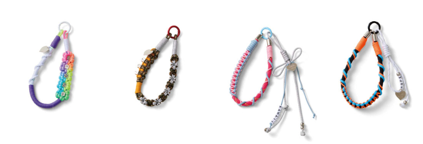 「編み物は少しハードルが高い」と感じるあなたにおすすめしたいのはショートストラップのDIYキット。コードを結びながら編んでいくだけだから、初心者さんでも大丈夫!宮脇咲良さんがセレクトした「BLOOM」などのキーワードをレタービーズで編み込みます。集めてつなげればロングストラップとしてマルチに使える便利なアイテムです。1キットごとに1アイテムを仕上げることができます。4か月連続でお届けします。