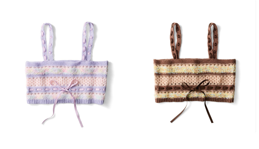 ファンシーヤーンにリボンなどを織り交ぜて、ていねいに編み上げた、ふんわり軽やかな仕上がりのニットビスチェを完成品でお届けします。ほのかに甘くやわらかいピンクとシックなブラウンの心躍る2色は、宮脇咲良さんこだわりのセレクト。コンパクトなサイズ感で、季節を問わず、レイヤードスタイルに取り入れやすいのもビスチェの魅力。Tシャツやキャミソールの上に重ねて、誰でも気軽にニットの楽しさを味わうことができます。